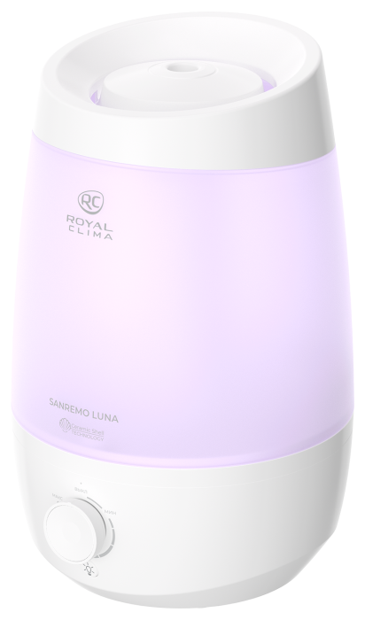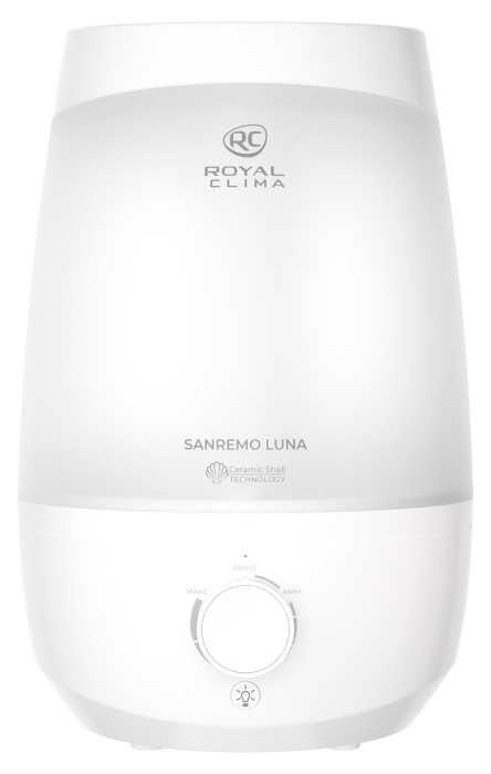 Ультразвуковой увлажнитель воздуха SANREMO Luna от ROYAL CLIMA обладает оптимальными параметрами производительности и только необходимыми функциями в лаконичном исполнении. Отличительной особенностью увлажнителя является верхний залив воды. Теперь заполнять резервуар водой стало быстрее и удобнее.