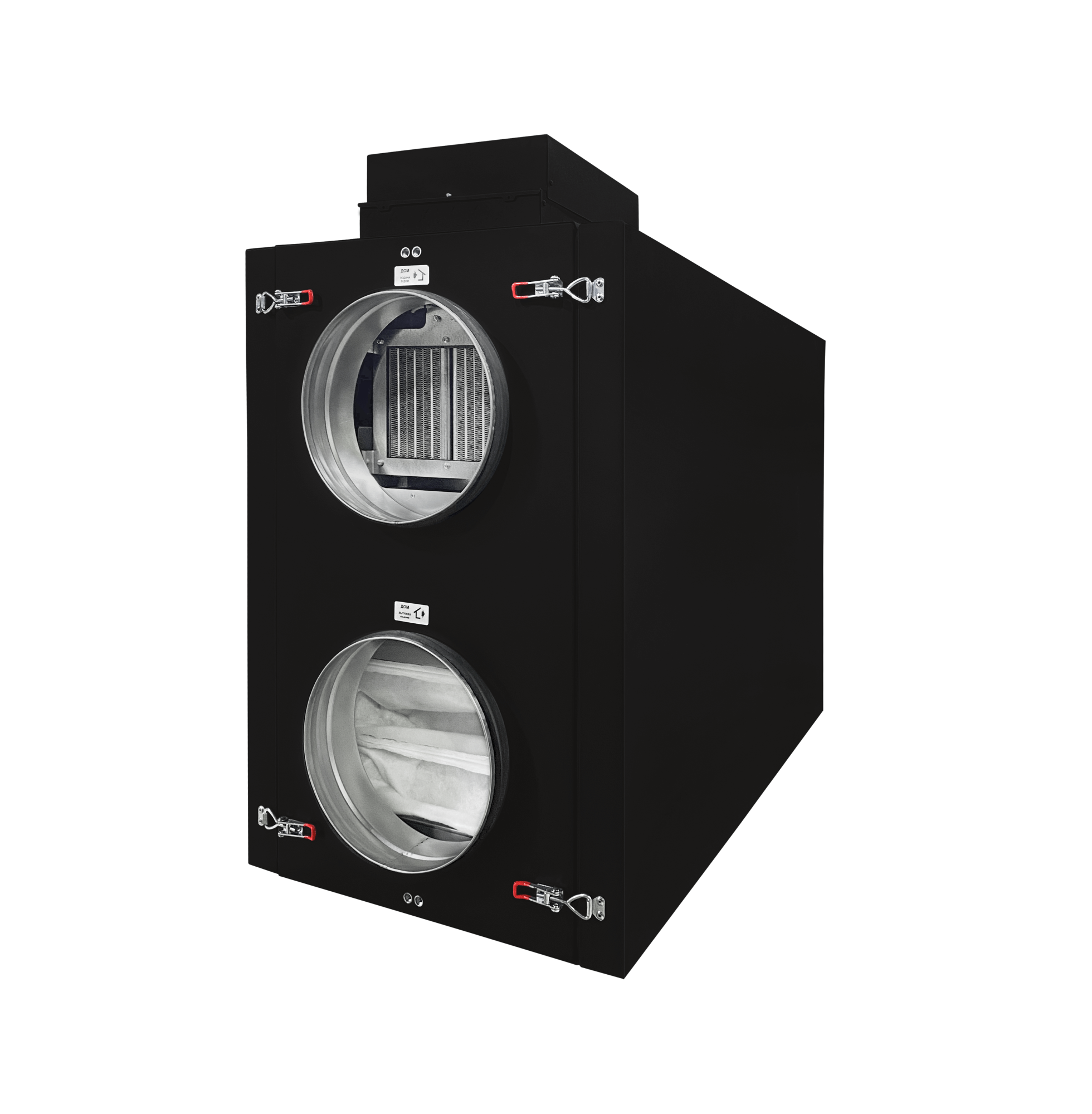 • Приточно-вытяжная вентиляционная установка с рекуперацией тепла и сохранением влаги. Оснащается электрическим нагревателем и двухступенчатым рекуператором, который обеспечивает работу без преднагрева при уличной температуре до -25 °C.